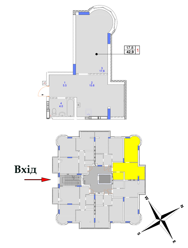 Загальна площа: 42,9 м²