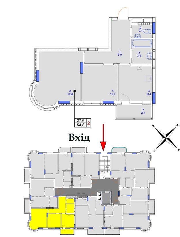 Загальна площа: 54,8 м²